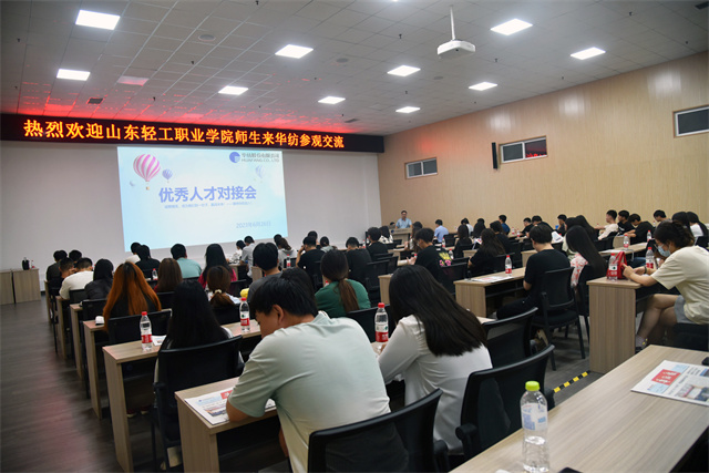 6月26日上午,山東輕工職業(yè)學(xué)院紡織工程系百余名學(xué)院師生,在公司黨委委員、人力與行政總監(jiān)孫玉濤等領(lǐng)導(dǎo)陪同下走進(jìn)公司參觀學(xué)習(xí)。