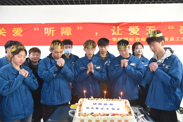 3月28日,公司黨委、工會(huì)、團(tuán)委、關(guān)工委聯(lián)合舉辦了以“關(guān)愛‘聽障’”,讓愛無(wú)‘礙’”為主題的華紡股份有限公司單身員工生日會(huì)。公司黨委委員、人力行政副總經(jīng)理孫玉濤,工會(huì)、團(tuán)委、關(guān)工委主要負(fù)責(zé)同志、服裝車間相關(guān)負(fù)責(zé)同志以及30名聽障員工參加活動(dòng)。