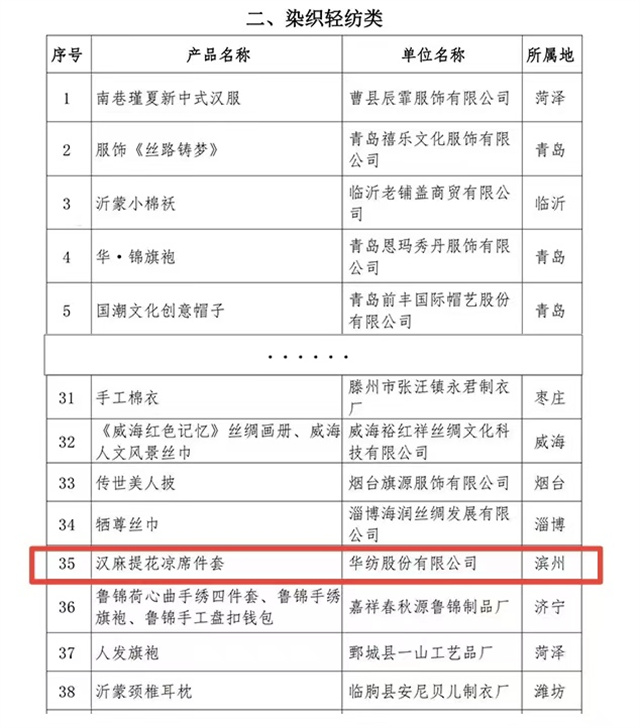 “山東手造”是省委、省政府發(fā)揮文化資源豐厚、傳統(tǒng)工藝品類齊全的優(yōu)勢,創(chuàng)新打造的文化創(chuàng)意區(qū)域公共品牌,是塑造山東文化創(chuàng)意產(chǎn)業(yè)發(fā)展新優(yōu)勢的重要抓手。按照省委、省政府關于推進“山東手造”工程的部署安排,本次“山東手造·優(yōu)選100”遴選活動共分為傳統(tǒng)美術類、染織輕紡類、文玩用品類、刻塑鑄造類、木作家具類、傳統(tǒng)食品類六大類。其中,公司家紡床品產(chǎn)品——漢麻提花涼席件套作為染織輕紡類,成功入選2023“山東手造·優(yōu)選100”名單,這無疑是對公司產(chǎn)品品質(zhì)與工藝的高度認可。