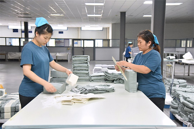 在高強(qiáng)度的工作環(huán)境下,王營和吳志叢不僅沒有放慢腳步,反而更加注重細(xì)節(jié),力求完美,確保每一件產(chǎn)品都達(dá)到卓越的品質(zhì)標(biāo)準(zhǔn)。最終,憑借她們不懈的努力與頑強(qiáng)的拼搏,完成天絲枕套熨燙4000件,整疊包裝枕套1600對(duì),以兩人之力完成了相當(dāng)于五至六人的工作量。