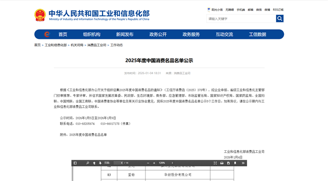 導讀:近日,工業(yè)和信息化部公布了2025年度中國消費名品名單。